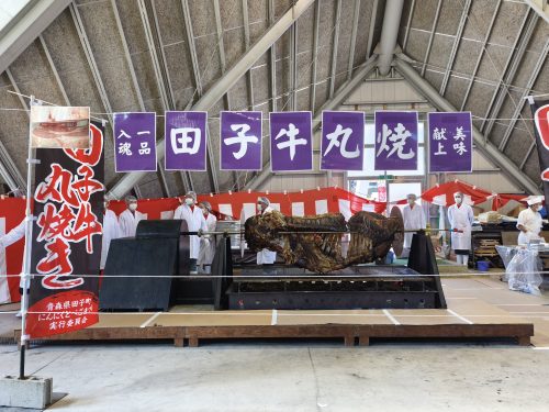 また、田子牛の丸焼きも販売開始の1時間前から長蛇の列に並んでゲット!