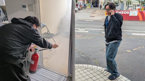 okinoさんは現場で消火器を用いた消火を試みます!